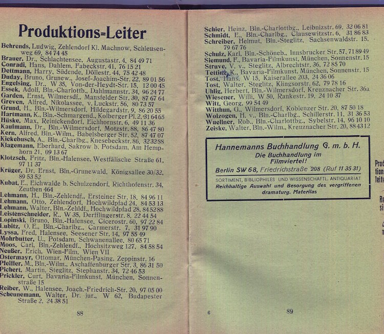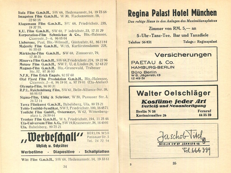Germany Berlin Cinema Address Book 1939 Inside 6