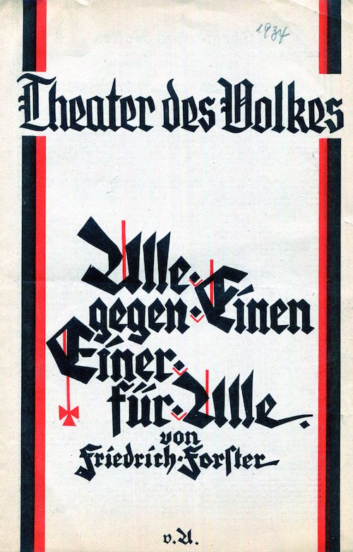 Germany Berlin Entertainment Theater Des Volkes Program Alle Gegen Einen Einer Fur Alle 1934 Front