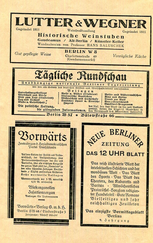 Germany Berlin Entertainment Grosses Schauspielhaus Program 1927 Back