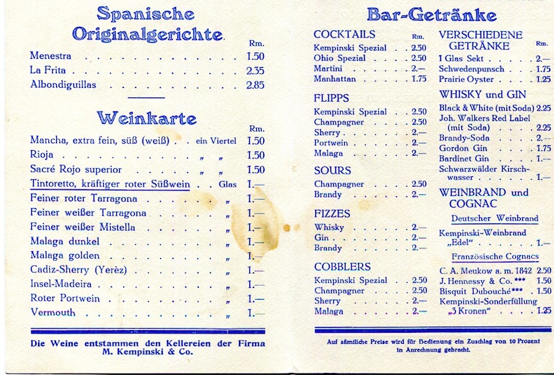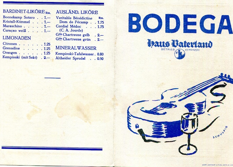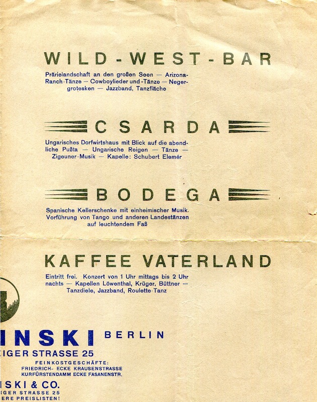 Germany Berlin Entertainment Haus Vaterland Bodega Room Menu 1930 Front