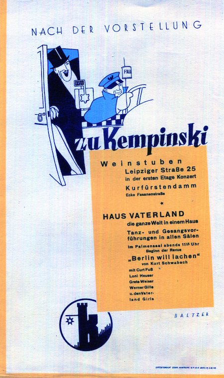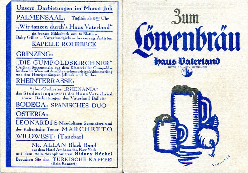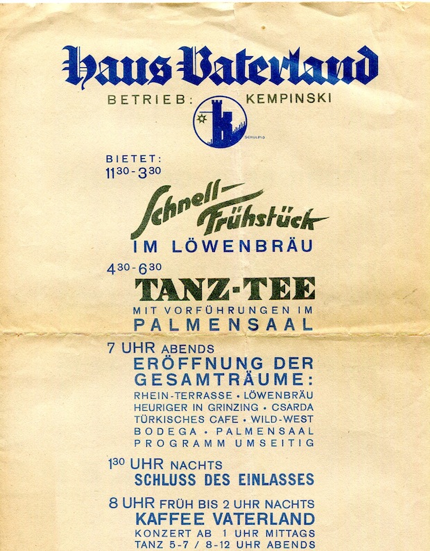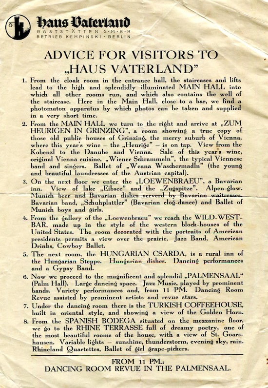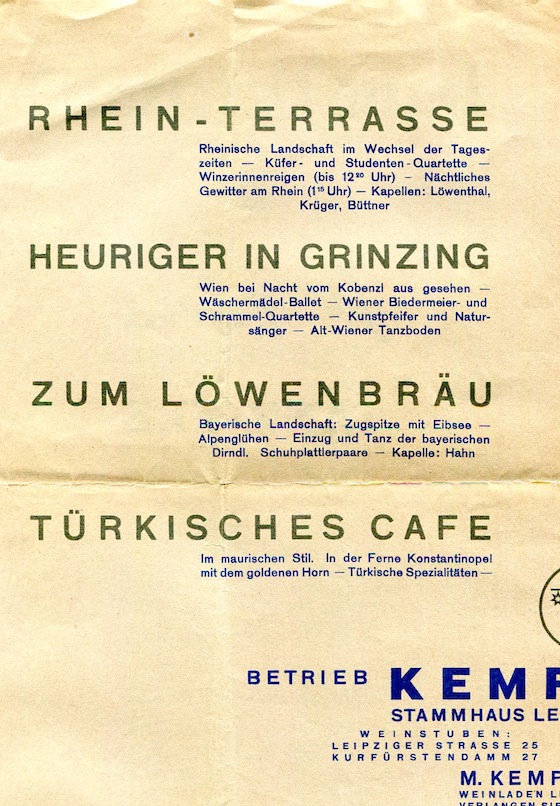 Germany Berlin Entertainment Haus Vaterland Leaflet Kempinski Weinstuben 1929