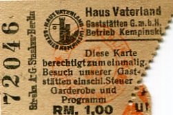 Germany Berlin Entertainment Haus Vaterland Kelliner Ticket 1929