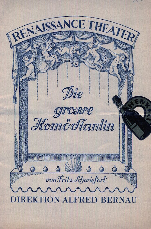 Germany Berlin Entertainment Renaissance Theater Program Die Grosse Komödiantin 1939 Front