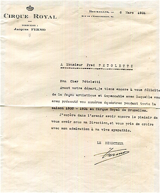 Belgium Brussels Commerce Cirque Royal Letter 1931