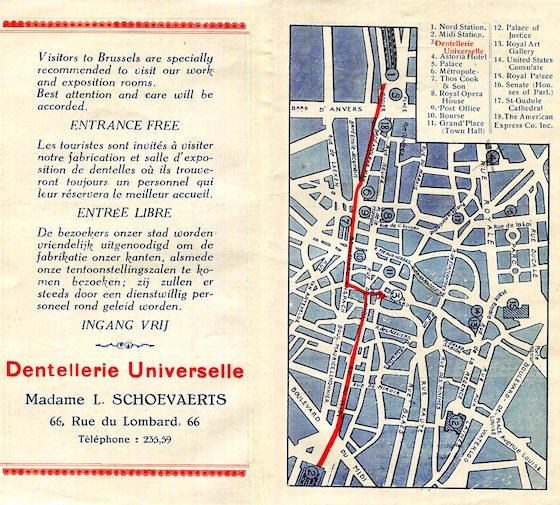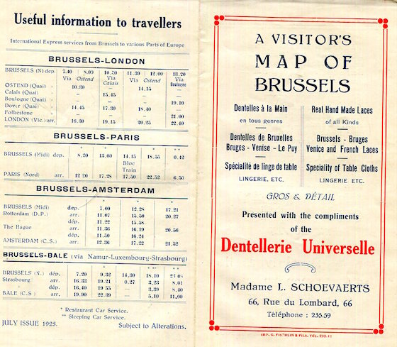 Belgium Brussels Commerce Dentellerie Universelle Map 1925 Front