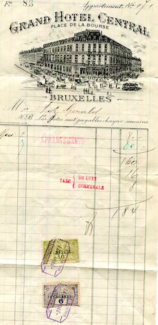 Belgium Brussels Grand Hotel Central Receipt 1927