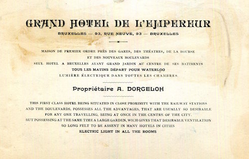 Belgium Brussels Grand Hotel De L Empereur Business Card 1902 Front