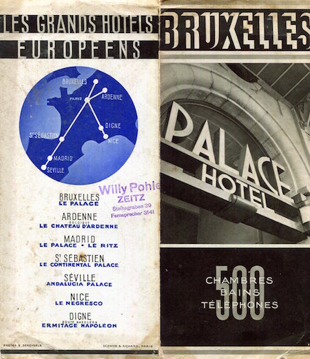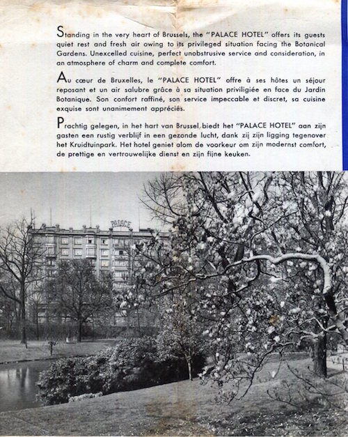 Belgium Brussels Palace Hotel Brochure 1924 Front
