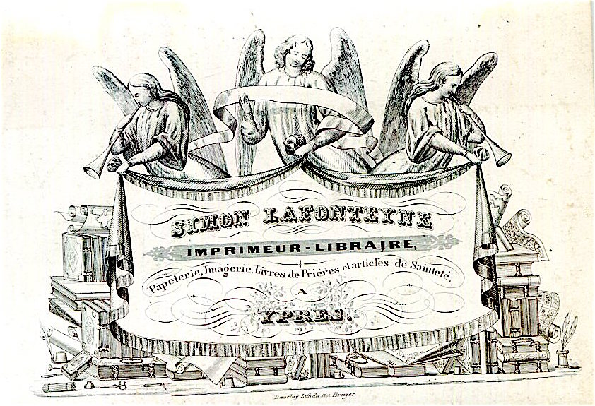 Belgium Commerce Ypres Simon Lafonteyne Pronter Bookseller Business Card Porcelain 1855