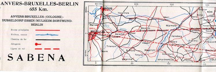 Belgium Transport Airline Sabena Route Map 1932 Inside