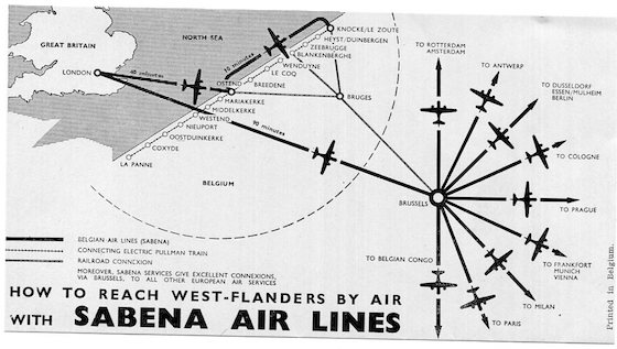Belgium Transport Airline Sabena Route Map 1938 Front