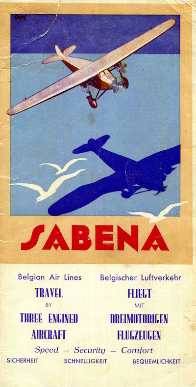 Belgium Transport Airline Sabena Timetable 1936 Front