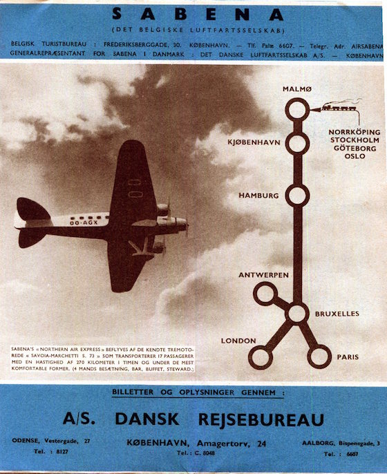 Belgium Transport Airline Sabena Leaflet Connections 1939