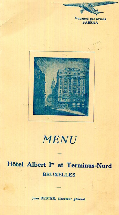 Belgium Transport Airline Sabena Terminus Nord Hotel Albert I Menu 1930 Front
