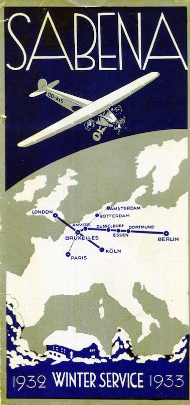 Belgium Transport Airline Sabena Timetable 1932 -1933 Front