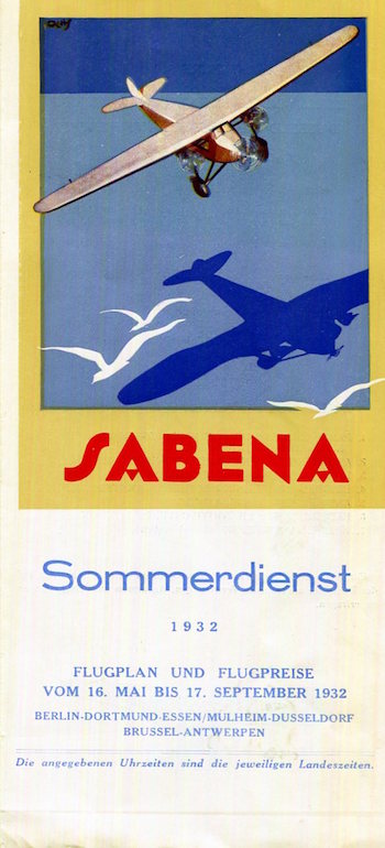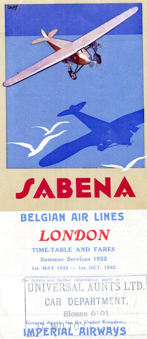 Belgium Transport Airline Sabena Timetable 1932-1 Front
