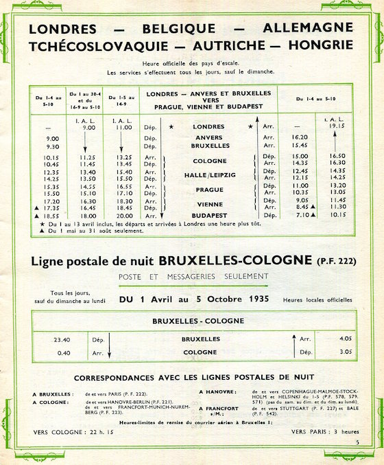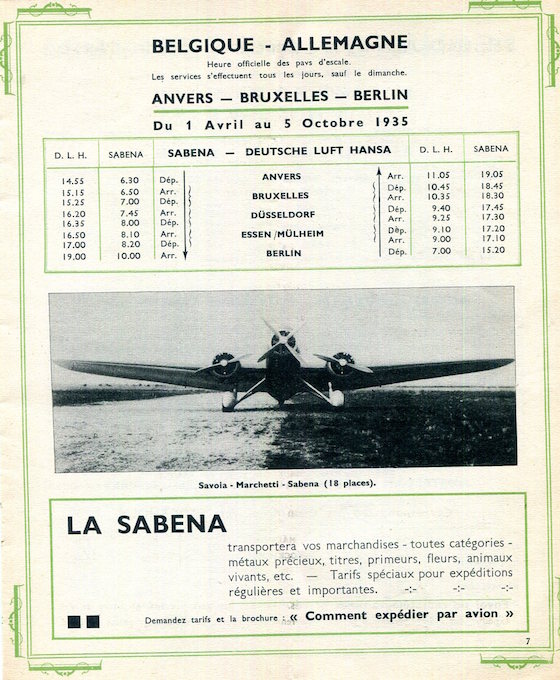 Belgium Transport Airline Sabena Timetable 1935 Inside 1