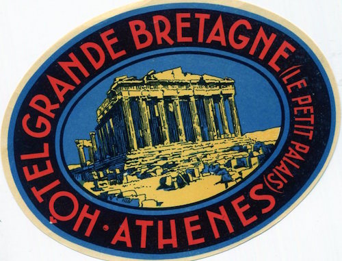 Greece Athens Hotel Grande Bretagne Luggage Label 1930-2