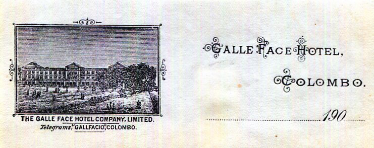 Ceylon Colombo Galle Face Hotel Bill Head 1902-2