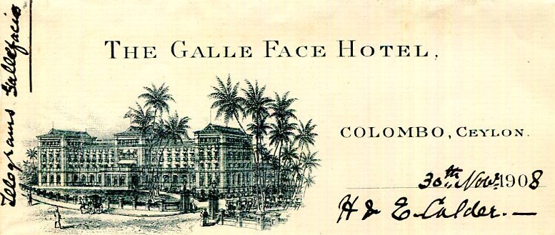 Ceylon Colombo Galle Face Hotel Bill Head 1908