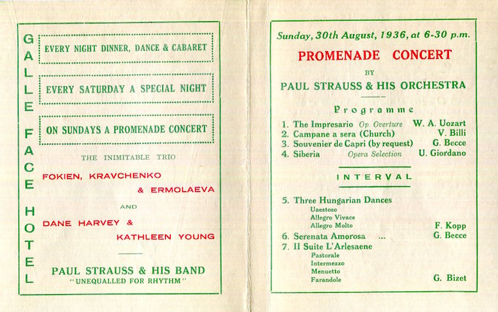 Ceylon Colombo Galle Face Hotel Concert Program 1936 Front