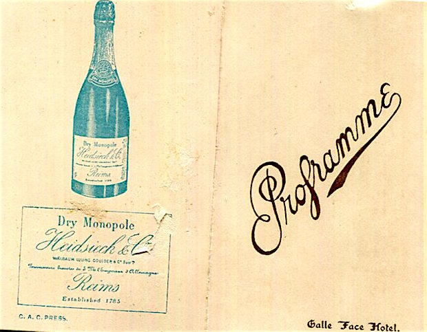Ceylon Colombo Galle Face Hotel Dance Program 1910 Front
