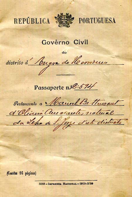 Portugal Passport 1920 Front
