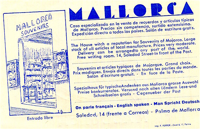 Spain Commerce Mallorca Souvenirs Business Card 1935 Front