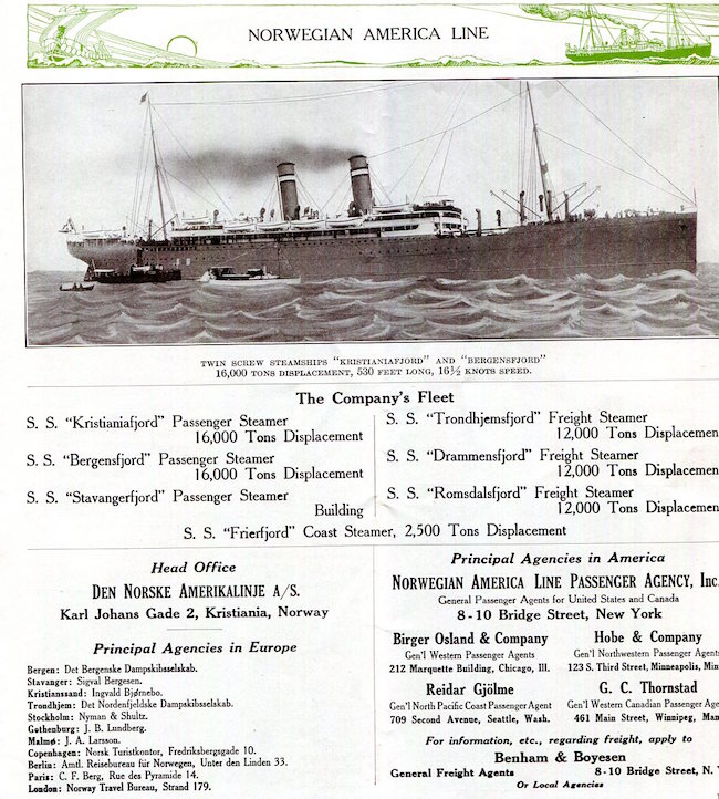 Norway Transport Steamships Norwegian America Line Brochure 1914 Inside 3