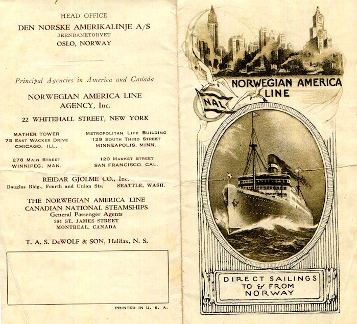 Norway Transport Steamships Norwegian America Line Brochure North America 1920 Front