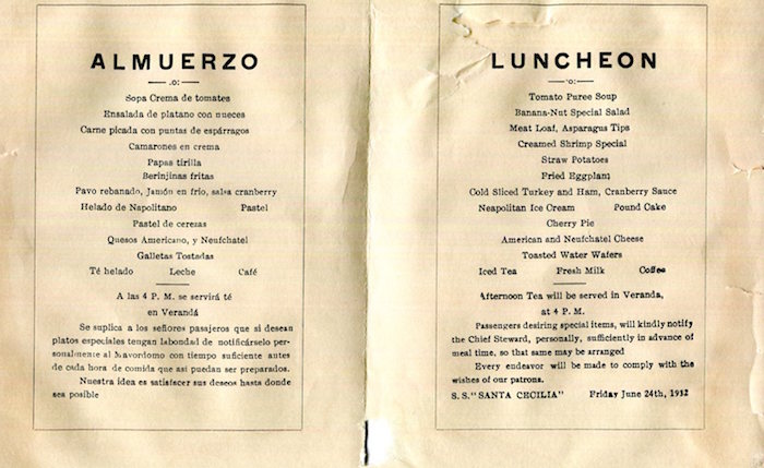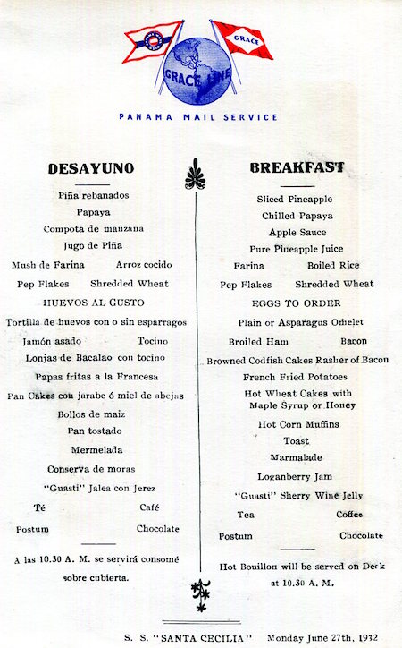 Panama Transport Steamship Panama Mail Grace Line SS Cecilia Menu 1932-1 Inside