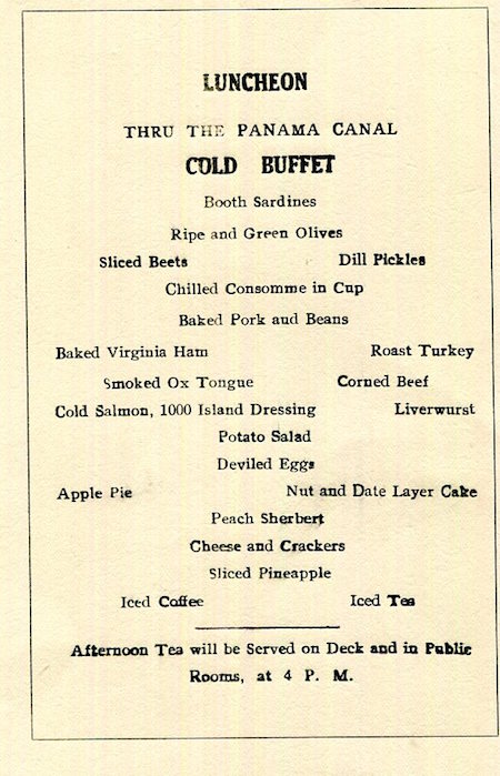 Panama Transport Steamship Panama Mail Grace Line SS Cecilia Menu 1928 Inside