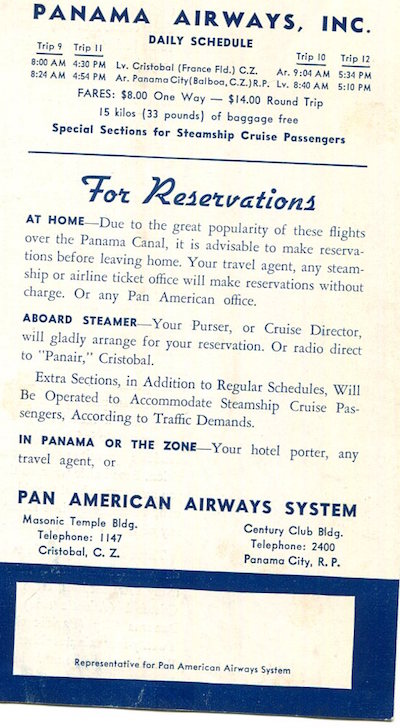 Panama Canal Transport Air Panama Airlines Brochure 1938 Back