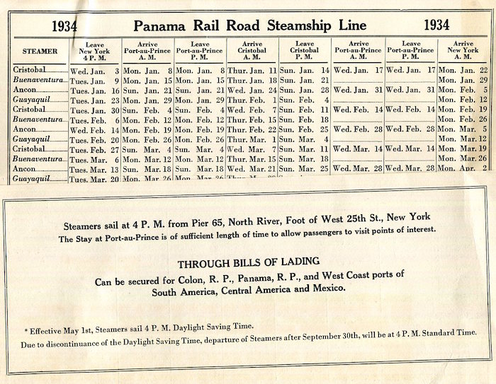 Panama Canal Transport Steamship Panama Rail Road Time Table 1943 Inside