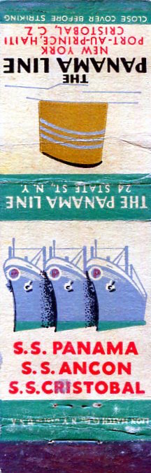 Panama Canal Transport Steamship Panama Line Matchbook Cover 1939