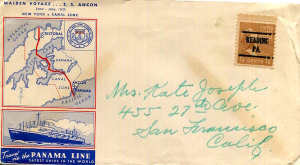 Panama Canal Transport Steamship Panama Line SS Ancon Envelope 1939