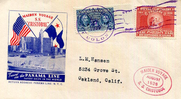 Panama Canal Transport Steamship Panama Line SS Cristobal Envelope 1939