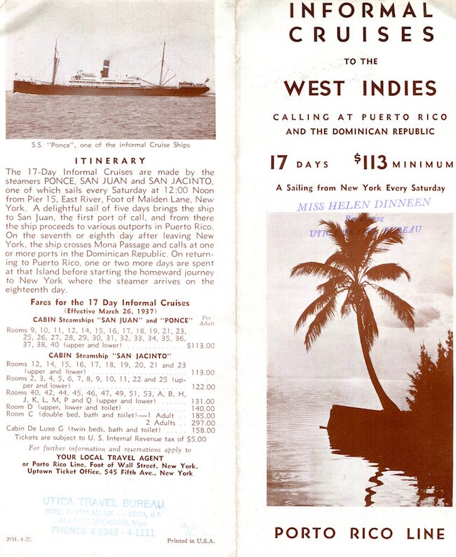 Puerto Rico Transport Steamship Porto Rico Line Brochure Dominican Republic 1937 Back
