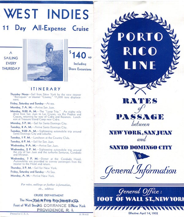Puerto Rico Transport Steamship Porto Rico Line Brochure Rates 1932