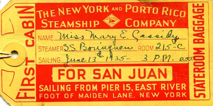 Puerto Rico Transport Steamship Porto Rico Line Luggage Tag 1935