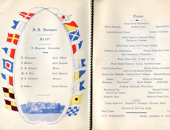 Puerto Rico Transport Steamship Porto Rico Line Menu 1935-3