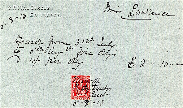 Scotland Edinburgh Boarding House 8 Royal Circus Receipt 1913