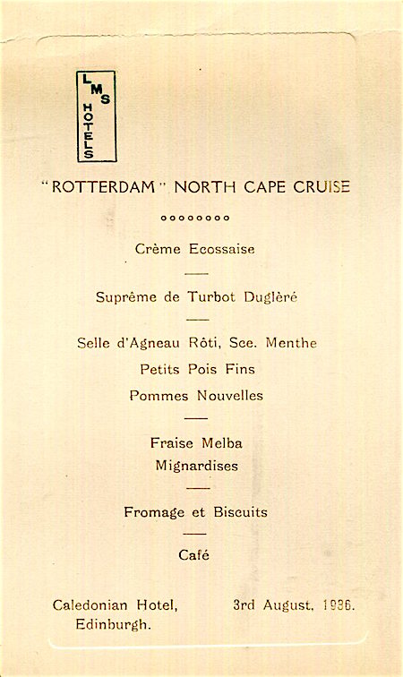 Scotland Edinburgh Caledonia Hotel Menu 1936