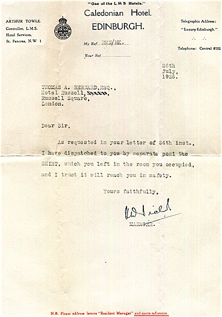 Scotland Edinburgh Caledonia Hotel Stationery 1926