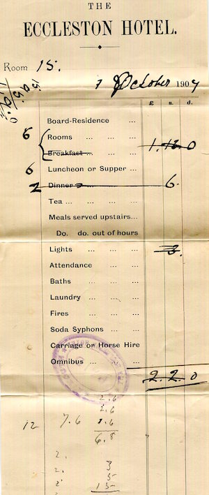 Scotland Edinburgh Eccleston Hotel Receipt 1904
