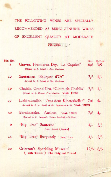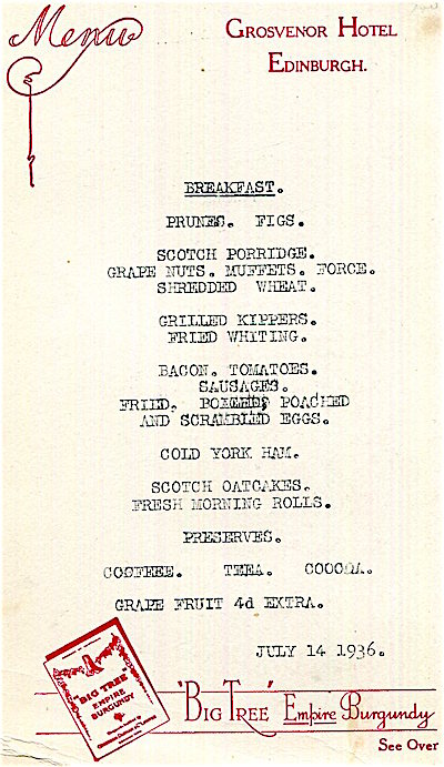 Scotland Edinburgh Grosvenor Hotel Menu 1938-2 Back
