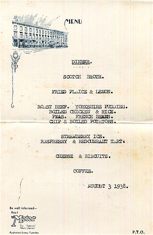 Scotland Edinburgh Grosvenor Hotel Menu 1938-2 Front