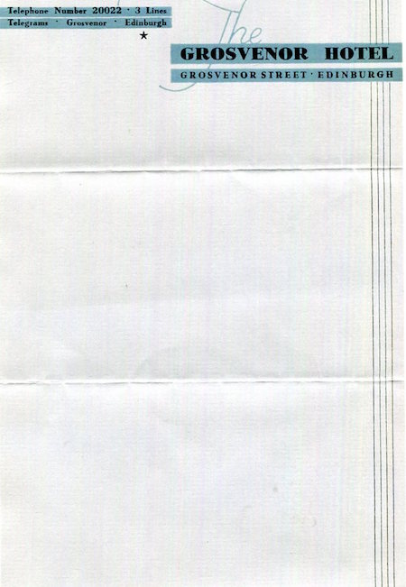 Scotland Edinburgh Grosvenor Hotel Stationery 1938