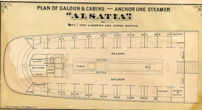 Scotland Transport Steamship Anchor Line Alsatia Cabin Plan 1890