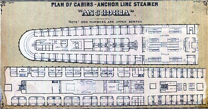 Scotland Transport Steamship Anchor Line Anchoria Cabin Plan 1890